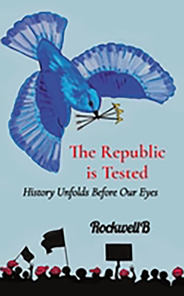 The Republic is Tested: History Unfolds Before Our Eyes is a bold and colorful chronicle that sits at the intersection of American history, justice, politics and visual arts. Pseudonymous artist RockwellB has created a unique book of over seventy-five narrative paintings depicting headline news events spanning the momentous and tumultuous timeline leading up to and following the 2020 U.S. presidential election.